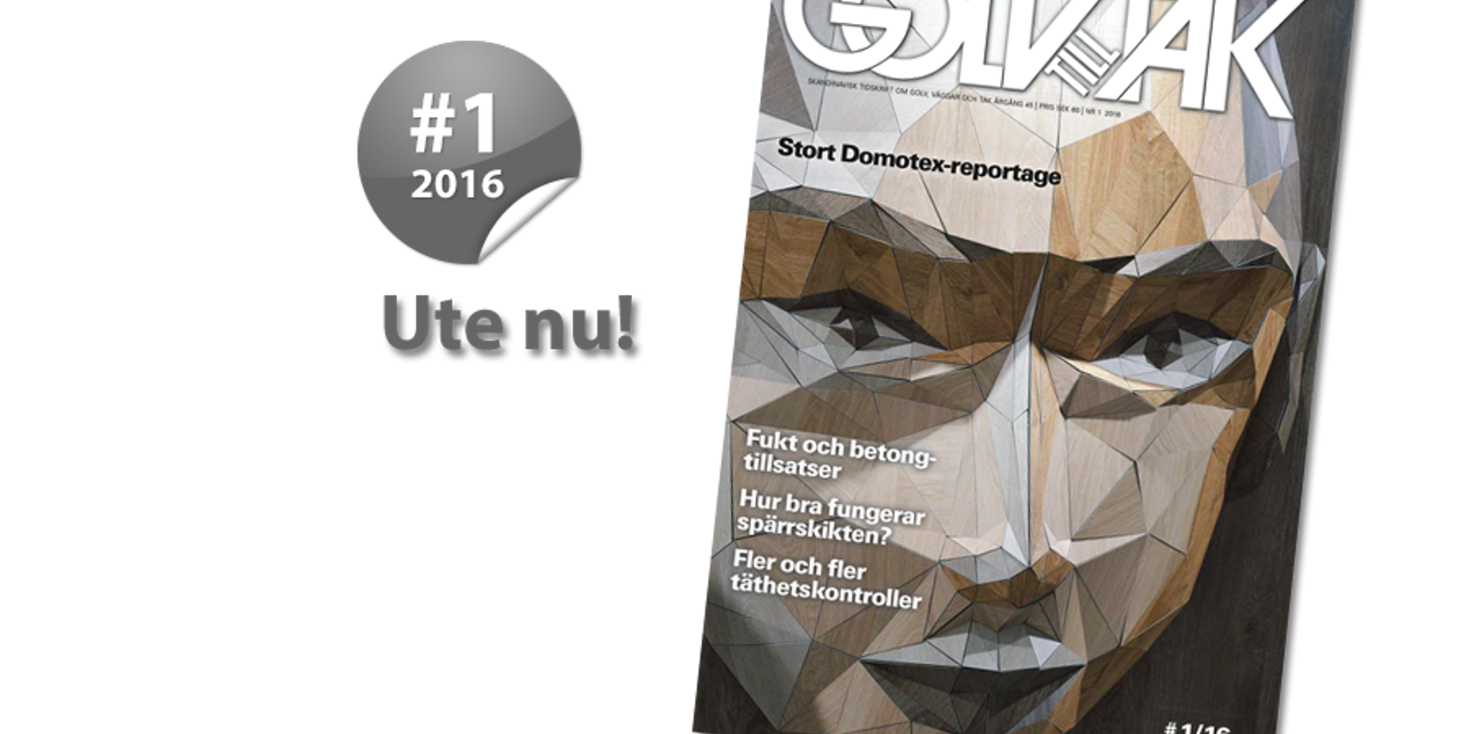 I årets första nummer av Golv till Tak ligger fokus på fukt, fuktmätning och vad man kan göra åt fuktproblemen. Läs också om hur fler våtrumsanmälningar bidrar till säkrare, tätare våtrum och få de senaste golvnyheterna direkt från Domotex. Håll utkik i brevlådan efter nr 1/16!