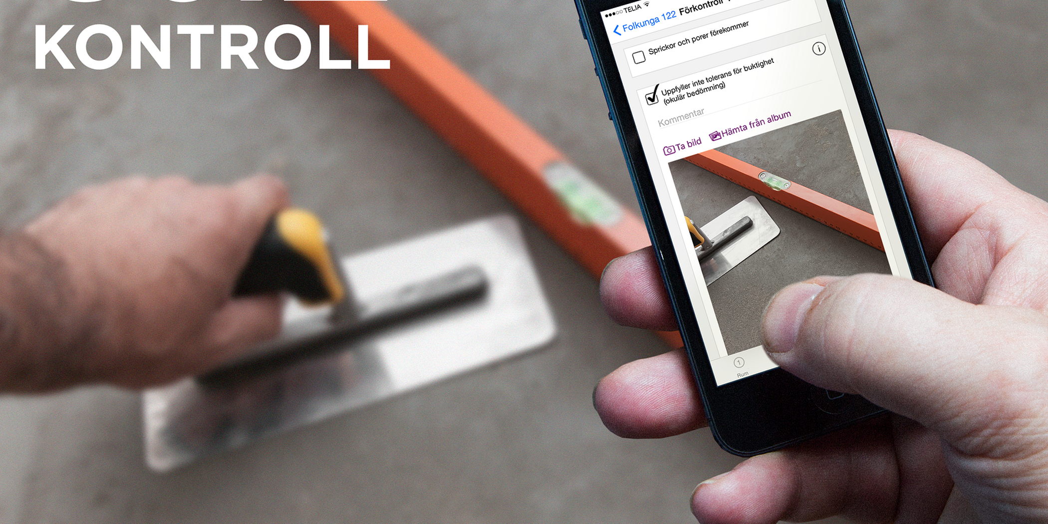 Egenkontrollen i sin tur anger vilket material man använt och hur jobbet utförts. Alla uppgifter sparas automatiskt och den samlade dokumentationen kan också enkelt skickas till beställaren.