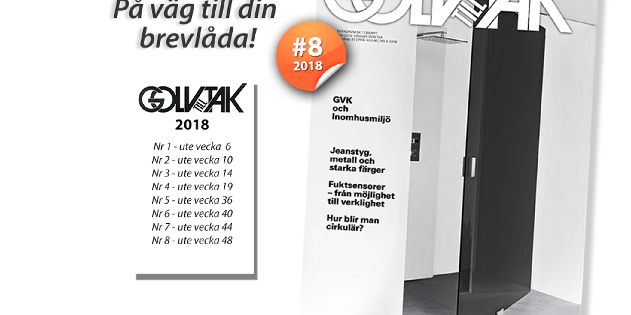 GVK står i centrum när årets sista nummer av Golv till Tak landar i brevlådan. Under sina 30 år har GVK-auktorisationen växt till att bli näst intill obligatorisk vid beställning av badrum. Läs om de krav, regler och kontroller som är själva kärnan i kvalitetssystemet GVK. Vatten eller vanligt vatten? Vi tittar närmare på städbranschens specialvatten. Badrumsutvecklingen hos stora bostadsbolag, nya trender inom kakel och klinker, tankar kring cirkulära materialflöden och entrémattans funktion är andra intressanta ämnen i detta extratjocka nummer av branschens egen tidning.
