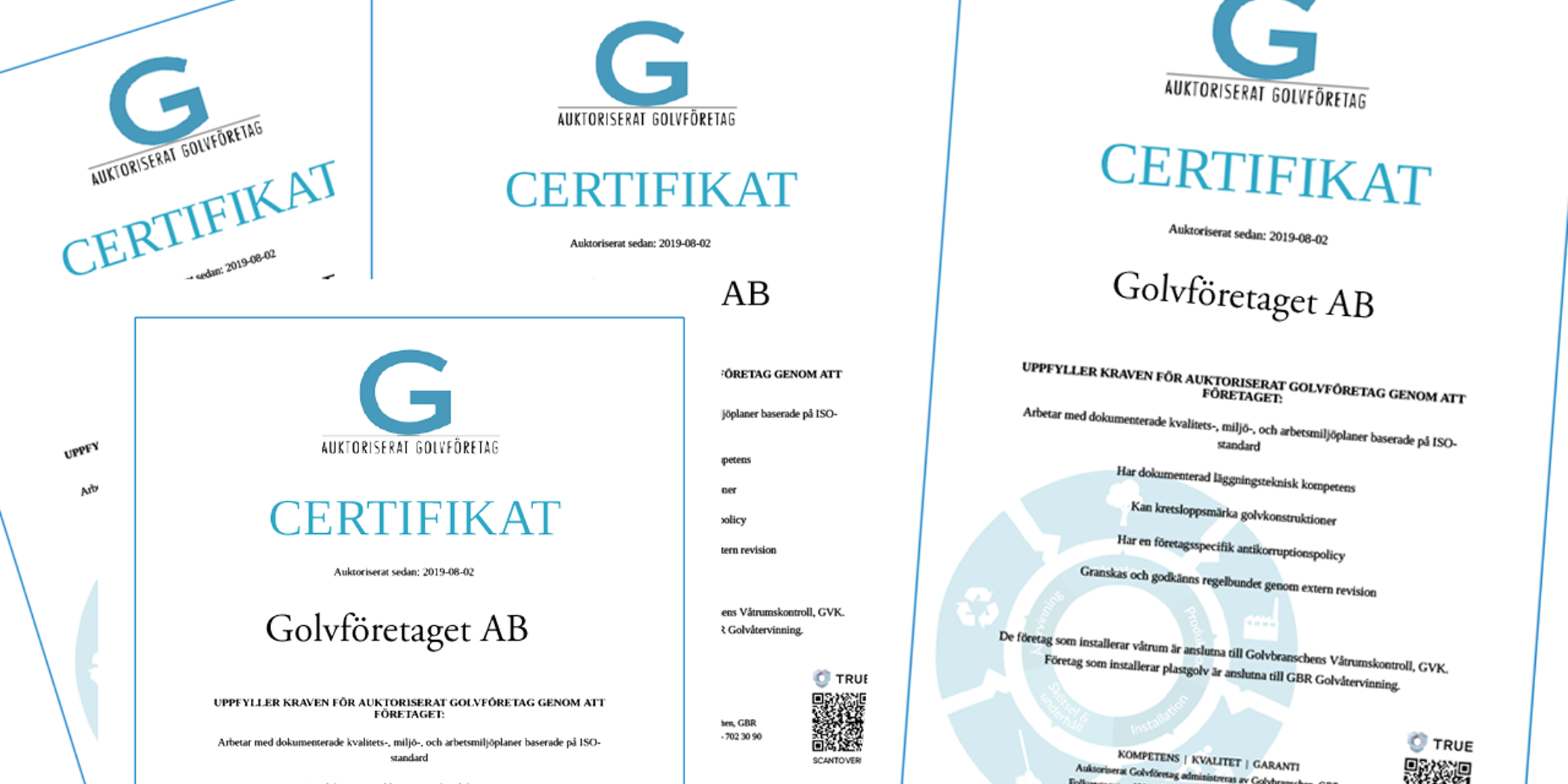 Ett nytt digitalt intyg som är omöjligt att förfalska lanseras nu för de av Golvbranschens entreprenörsföretag som tagit steget att bli Auktoriserat Golvföretag enligt Golvbranschen GBRs kvalitetskoncept.